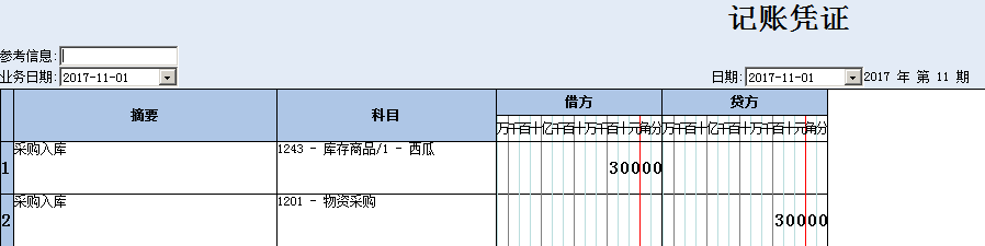 例:某单位在2017年第十期 采购 西瓜100公斤 但是本月没有收到发票 。